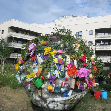 Der Bau unseres PLastik-Globus gestaltete sich extrem schwierig: Plastik ist ein Material mit einem Eigenleben, das erst mal gebändigt werden muss. Nach einem Fehlversuch ist es uns dann doch gelungen...