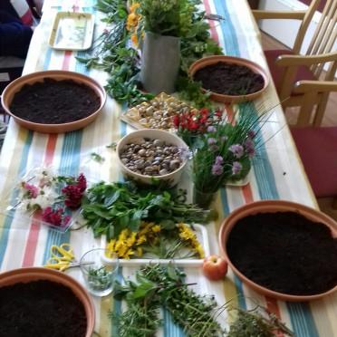 Unser diesjähriges Erfest haben wir an einem sonnigen Montag gefeiert. Zuerst konnten die Kinder selbst die Blumen anschauen und die grünen Blätter vergleichen. Danach wurde ein Blumen-Muster auf Stoff gelegt... -