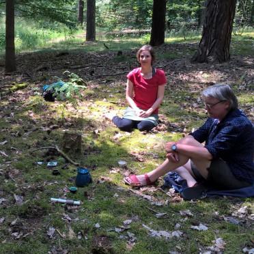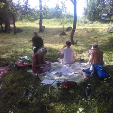 Zu zwölft trafen wir uns an der Krummen Lanke, und nach einem herzlichen Willkommen haben wir erstmal einige Minuten mit der Erde gestanden und uns im Kontaktaufnehmen mit Mutter Erde... -
