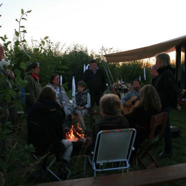 Obwohl wir unser »Erdfest« im Newsletter des Vereins, per Aushang in regionalen Bioläden sowie über XING, die Webseite der ERDFEST-Initiative und eine Pressemitteilung bewarben, war die Resonanz eher mäßig. Es kamen hauptsächlich uns bereits verbundene Menschen, die ihre Partner*innen oder Freund*innen mitbrachten. Offensichtlich lassen sich die Menschen eher von konventionellen Feiern und der Fußball-WM ablenken als sich für naturverbundene Feste, die eine Mitwirkung verlangen, zu interessieren. Der persönliche Kontakt und die Ansprache auf das geplante Fest sind immer noch die beste Werbung.