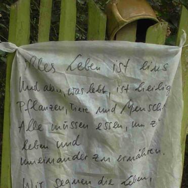 Wir waren 24 Erwachsene und vier Kinder, und es war eine heitere offene Atmosphäre, auch voller Neugier und Erwartung. Mit dem Gedanken von Martin Shaw, sich einem Ort zuzueignen, habe ich den Reigen eröffnet und mich bei allen bedankt, dass sie diesen Ort durch ihr Dasein lebendig machen und ihn segnen. Ebenso bedeutsam ist uns ein Text von Wendell Berry über die Erde und unsere Körper gewesen und unser Nachsinnen darüber, dass unsere wesentlichste tägliche Verbundenheit mit der Erde unsere tägliche Nahrung ist, und was es mit uns macht, wenn 98 Prozent der Menschen in unserem Land nichts mehr mit dem direkten Nahrungserwerb zu tun haben, und wenn wir uns der Erde nicht mehr in Dankbarkeit zuwenden. Schon in den Wochen davor hatte mich Theodor Storms Geschichte von der »Regentrude« immer wieder bewegt und der Spruch, um sie zu wecken, hing zwischen den Bäumen: »Dunst ist die Welle, Staub ist die Quelle, Stumm sind die Wälder, Feuermann tanzt über die Felder. Nimm dich in Acht, eh´ du erwacht, holt dich die Mutter heim in die Nacht.« Im Osten Deutschlands kennt diese Geschichte in meiner Generation jeder. Und – wir hatten einen wunderbaren Klavierspieler ...