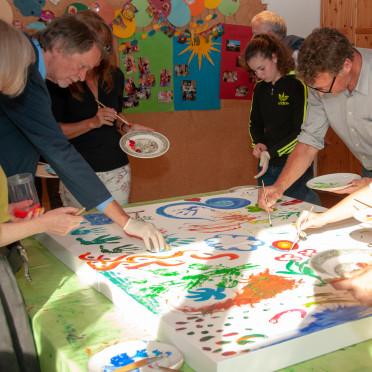 Am 23. Juni 2018 beging die Ev. Kirchengemeinde Uckerath ihr erstes Erdfest. In einem Abendgottesdienst mit dem Titel »Zwischen Himmel und Erde« kamen über 40 Menschen zusammen, um im Singen moderner Gospels und Spirituals und im Hören auf unterschiedlichste Sinnschichten und Aphorismen dem Thema der Lebendigkeit nachzuspüren. Im Zentrum des Gottesdienstes stand eine gemeinsame Kunstaktion. Hier waren die Besucher*innen eingeladen, ein gemeinsames Bild zum Thema zu gestalten. In offener, lockerer und zugleich dichter Atmosphäre entstand ein kleines Kunstwerk, in dem die Gestaltenden nicht nur ihrer eigenen Lebendigkeit, sondern auch der einer ganzen Gruppe Ausdruck verliehen. Im Anschluss an den Gottesdienst ging es lebendig weiter. Die gemeindeeigene Band gab ein Benefizkonzert, bei dem zwei wunderbare Sängerinnen zu hören waren, Monique Schnitzler und Diana Schneider.