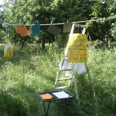 Auf Zetteln an einer Leine war eine große Bandbreite von Naturwahrnehmungen abzulesen – über Vorstellungen, ein ganz kleiner Teil der Natur zu sein, bis zu nüchtern-sachlicher Registrierung des Gegebenen.