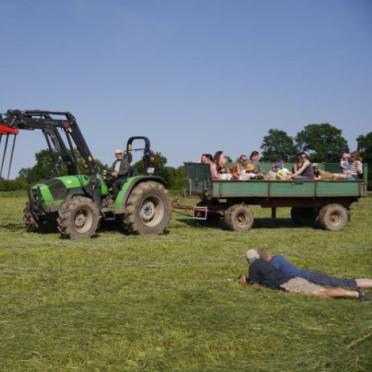 Zu unserem bereits zweiten Erdfest trafen wir uns auf einem weiten, sonnigen Acker, den wir gemeinsam mit Tischen, Bänken, Blumen, Mitbring-Buffet und einer Feuerstelle in einen Festplatz verwandelten. Strohballen und alte Trecker wurden zum Erkundungsgelände für die Kinder.