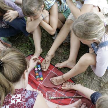 Mit dem Erdfest haben wir einen Raum geöffnet, in den jede*r Ideen einbringen konnte und Beiträge aller Art willkommen waren. Die Kinder haben getanzt und gesungen, getöpfert und Füße bemalt. Es wurde vorgelesen und Gedichte verfasst, ein Mandala um das Lagerfeuer gelegt, und kleine Kunstwerke wurden geschaffen. Wir fühlen uns beschenkt von diesem kreativen Prozess, der sich ganz natürlich, aus sich heraus entfaltete.