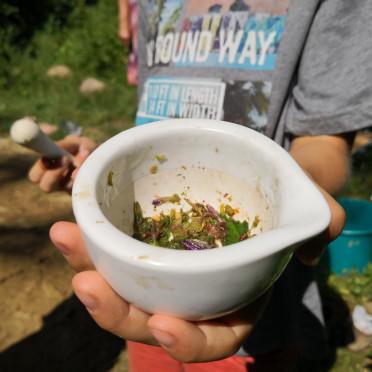 Andere sammeln Früchte des Bodens: Blüten und Blätter, ganz verschiedene, einige finden sie schnell, andere müssen genauer suchen und finden. Ein Schluck Wasser, ein Mörser und schon haben wir einen Duft, komponiert aus der wachsenden Vielfalt und gepflückt aus dem Zufall des Moments. Ganz unterschiedliche Naturparfüme erstaunen uns: mal würzig, mal grasig, doldig-süß. Wiederum andere greifen zu Grashalm, Wurzel und Blüte und malen damit Bilder.