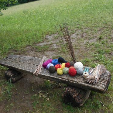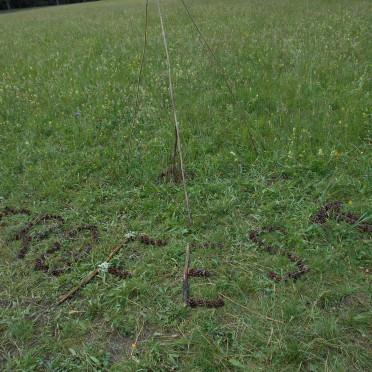 Durch meine Aktivität in der Natur habe ich eine tiefe Wertschätzung für die lebendige Erde gespürt: Ich habe den Platz vorbereitet, mit den Zapfen das Wort »Erdfest « gelegt und ein magisches Auge aus gesammelten Stöcken und Wolle gestaltet; und dazu Lieder gesungen. Es gab zwei nette kurze Kontakte zu Spaziergängern, die sich über mein mitgebrachtes Dinkelbrot freuten. Kurz vor dem großen Schauer kam ein Herr gezielt zum Erdfest. Auf dem gemeinsamen Rückweg haben wir den Regen einfach über uns ergehen lassen, denn der Austausch stand im Vordergrund.