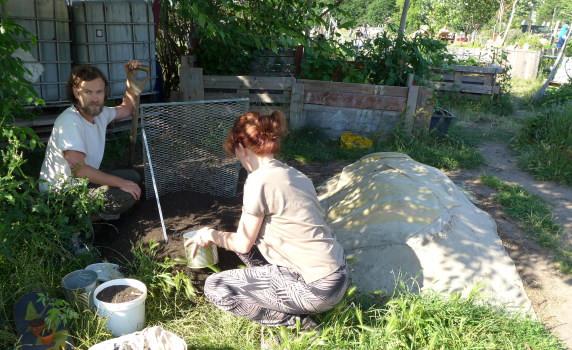 Es war das erste Erdfest bei gutem Wetter. Die Stimmung war hervorragend, und der Kompost, den wir vor einer Woche aufgesetzt hatten, heiß. Viele hatten an diesem wunderschönen Gartentag die Gelegenheit genutzt, die lebendige Energie eines Heißkomposts mit ihren eigenen Händen zu spüren.
