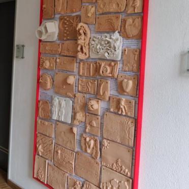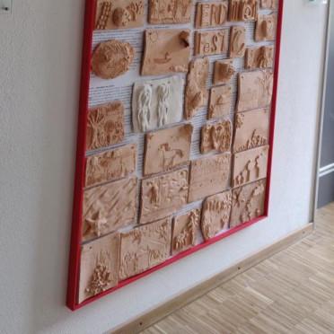 Entstanden ist ein ca. 2 Meter x 1,5 Meter großes Tonrelief, welches aus ca. 70 Einzelplatten besteht und die Bildsprache und Ideenwelt von Kindern ab 5 Jahren, Jugendlichen und Erwachsenen bis 85 Jahre zusammenfügt.