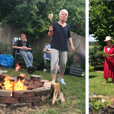 Am Freitag eröffneten wir die Erdfest-Tage, indem wir uns auf meditative Kommunikation mit Blumen einließen. In einem Feuerritual übergab anschließend jede*rdem Feuer einen Holzscheit – stellvertretend für etwas Transformationsbedürftiges.