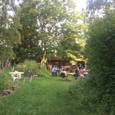Unser Erdfest 2021 haben wir mit ca. 30 Personen in unserem schönen Naturgarten zwischen Wildblumenbeeten, alten Bäumen und Teich mit einem feinen Konzert von ganz besonderen Musiker*innen gefeiert und genossen. Begleitet von Frosch- und Vogelkonzert gab es Chansons und Instrumentalstücke mit Piano und Gitarre. Abgerundet wurde die Musik, die bereits die Herzen und Köpfe weit gemacht hatte, durch inspirierende Texte. So konnte man sich mit der Erde wieder mehr verbunden fühlen und eine tiefe Dankbarkeit fühlen für die Wunder der Natur, die Pflanzen, Insekten sowie andere Tierarten, die Musik und die Verbundenheit, die wir dadurch spürten.